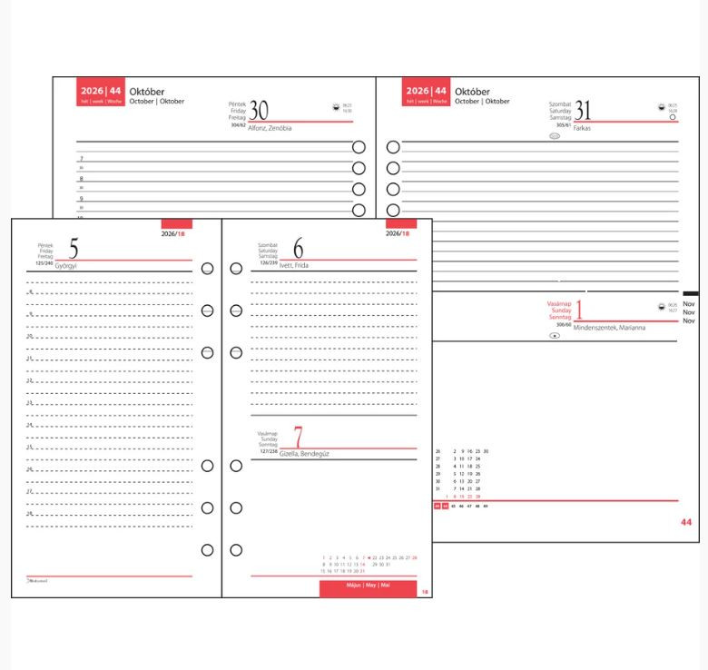 4. Gyűrűs kalendárium kiegészítők és pótlapok