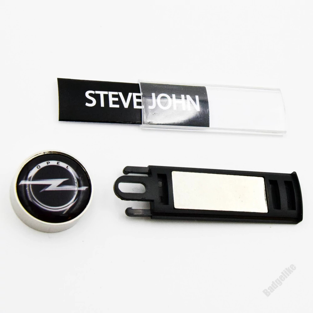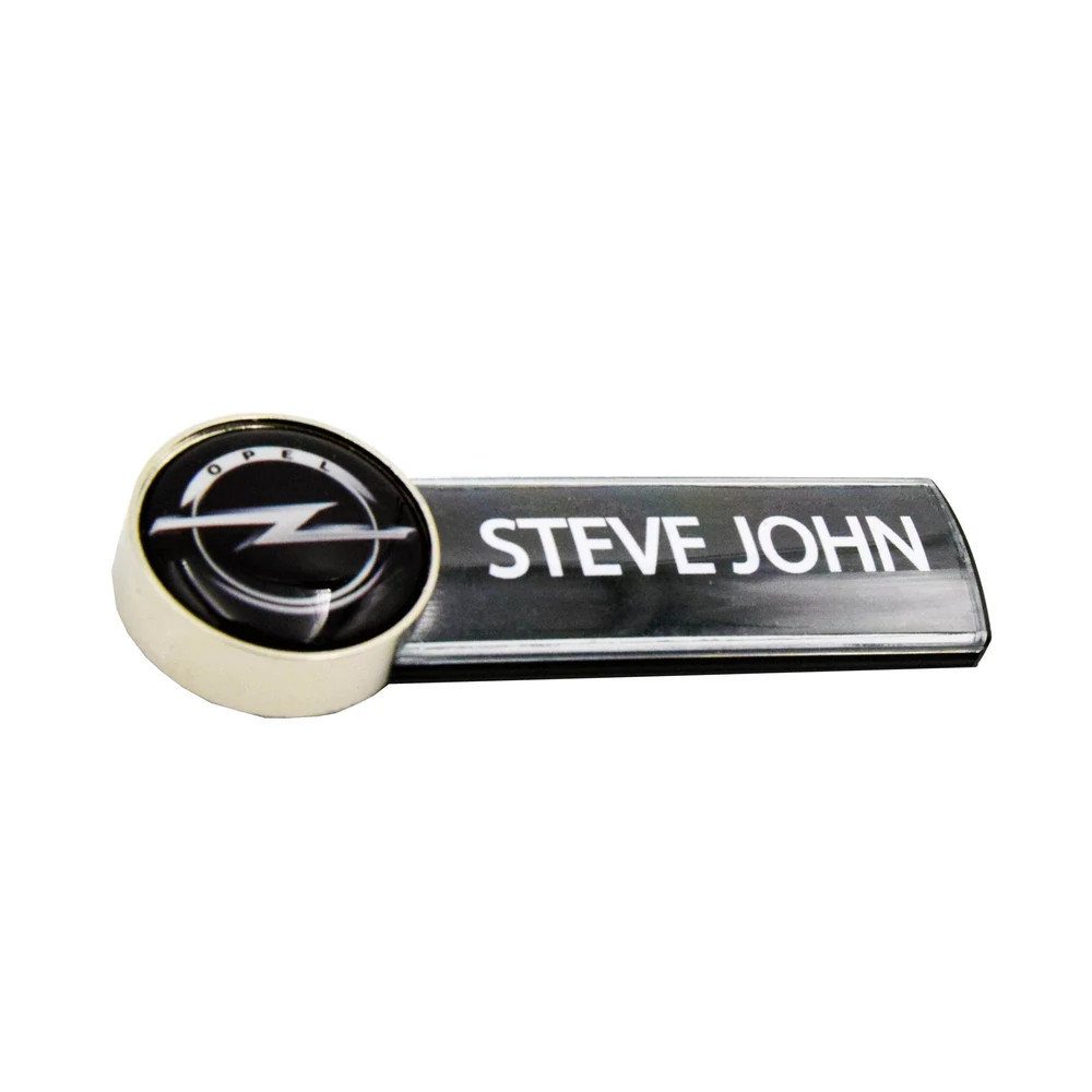A két részből álló névtábla a figyelemfelhívó 3D-s logó révén egyszerre tükrözi igényesen a vállalat arculatát, és biztosít praktikusan kialakított, jól látható és könnyen cserélhető helyet a viselő nevének.