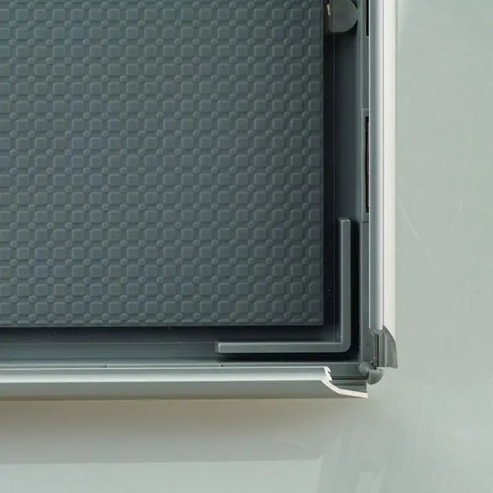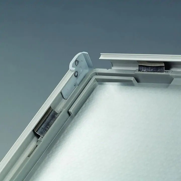 Az Opti Frame egy szabadalmaztatott, innovatív technológiával gyártott pattintós plakátkeret. A keret hátoldala egybeöntött műanyag, míg előoldala eloxált alumínium. Gazdaságos, mégis tartós és stabil, garantáltan hosszú élettartamú. Az antireflex védőfólia megelőzi a tükröződést és a csillogást, így a poszteren lévő tartalom mindig tisztán és élesen látható.