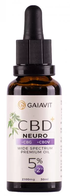 Gaiavit CBD Neuro 5+2% olaj a belső nyugalom eléréséért, stresszhelyzetek nyugodt kezeléséért, az idegrendszeri problémák javításáért.