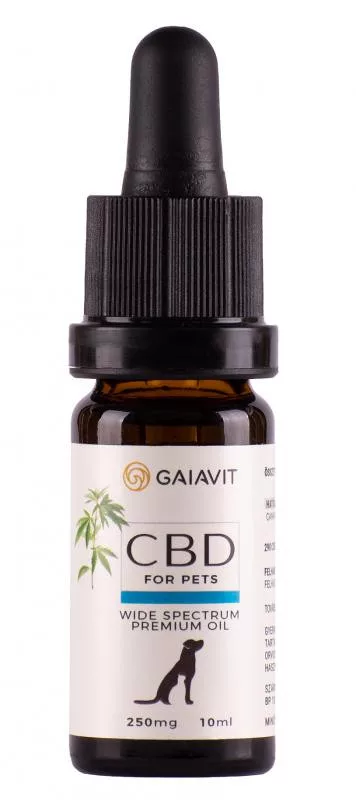 Gaiavit CBD kisállatoknak való 2,5% olaj a belső nyugalom eléréséért, stresszhelyzetek nyugodt kezeléséért.