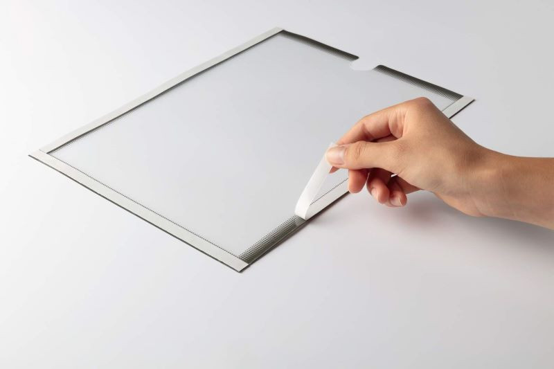 Három oldalon található rajta öntapadó csík, a negyedik oldalon egy kis bemélyedés segíti a dokumentumok behelyezését és cseréjét.