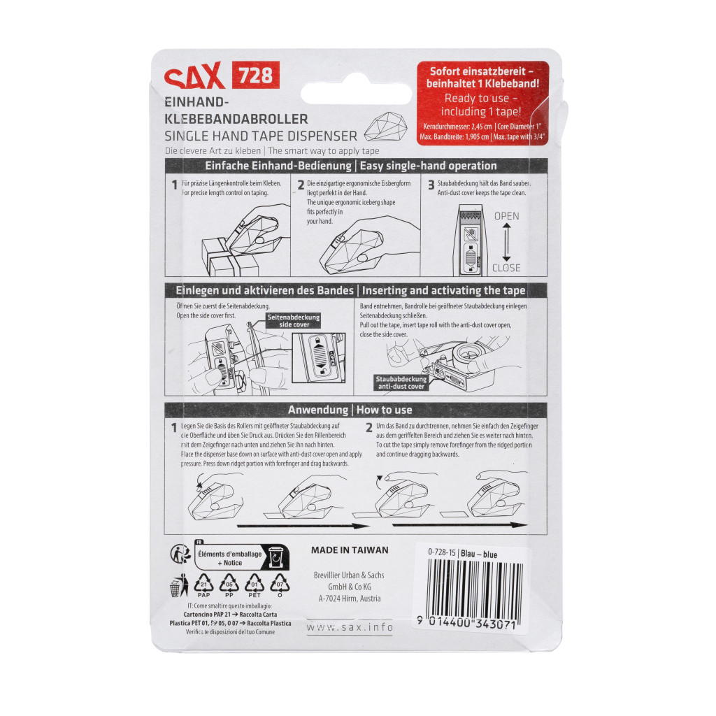 Ragasztószalag adagoló Sax 728 TR, egykezes, világoskék