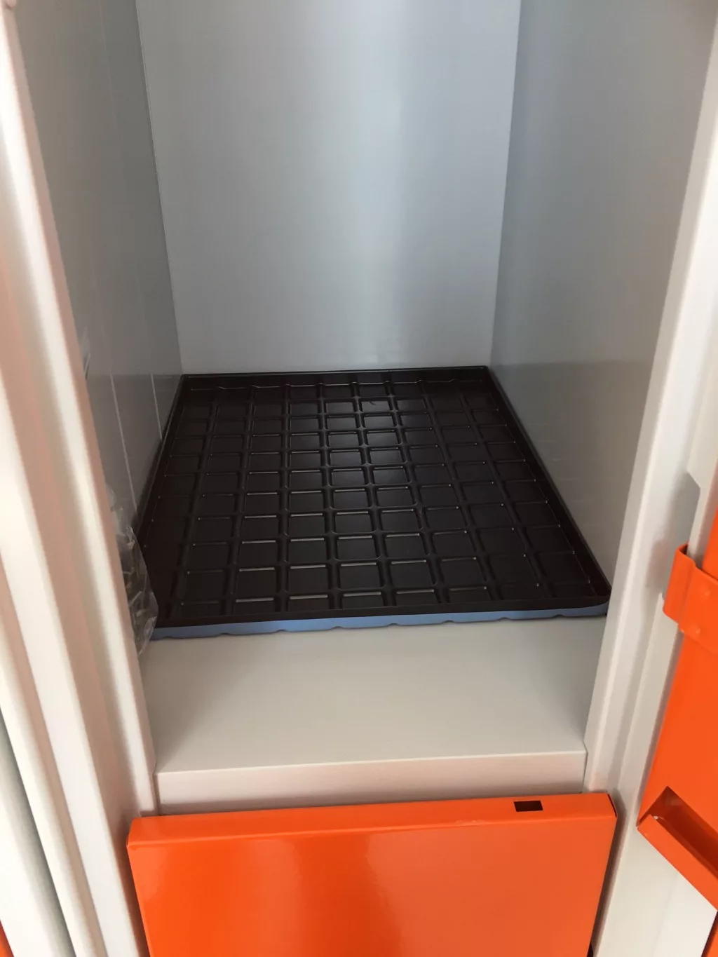 Erős műanyag tálca, Megvédi a szekrény alsó polcát a kopástól és a vizes cipőkokozta rozsdásodástól, így a szekrény élettartama jelentősen megnő.