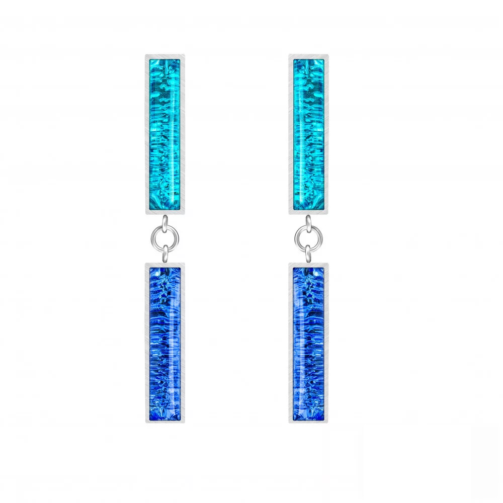 Az 58 mm hosszú lógó fülbevalók átszúrós típusúak, fém lefogók tartoznak hozzájuk.