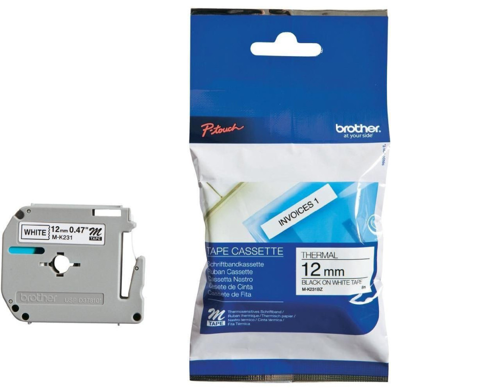 Brother M-K231BZ fehér alapon fekete eredeti feliratozó szalag